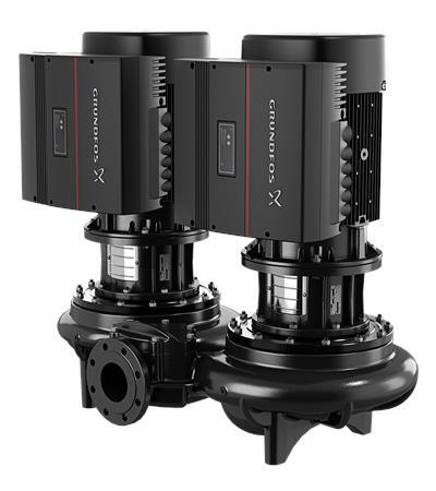 Enkeltraps, close-coupled, slakkenhuis dubbele kop pomp met in-lijn zuig- en perspoorten van identieke diameter.