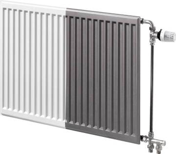 Henrad Premium ECO paneelradiator, aansluiting links onder, ventiel links+rechts, type 21, 700mm hoog x 900mm lang, RAL9016 wit