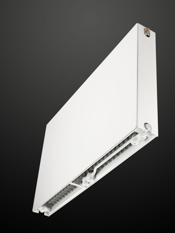 De Thermrad Super-8 Plateau is uitgevoerd met een luxe omkasting en een vlakke voorzijde. Net als de Super-8 Compact, heeft de Plateau uitvoering vele toepassingsmogelijkheden. Uitgevoerd met maar liefst 8 leiding aansluitingen kan de radiator in vrijwel elke situatie worden toegepast. De onder aansluitingen bieden optimaal installatiegemak en zorgen er tevens voor dat de CV-leidingen nagenoeg uit het zicht worden aangesloten. De Super-8 radiatoren zijn zeer geschikt voor nieuwe installaties, maar komen vanwege de vele aansluitmogelijkheden tevens goed tot hun recht bij uitbreiding of vervanging van bestaande radiatoren. Elke radiator wordt compleet geleverd met handige klik-consoles voor een snelle, veilige en onzichtbare wandmontage. De Plateau radiatoren hebben een vaste meerprijs t.o.v. de gewone Super-8 radiatoren, maar er zijn geen extra installatiekosten.